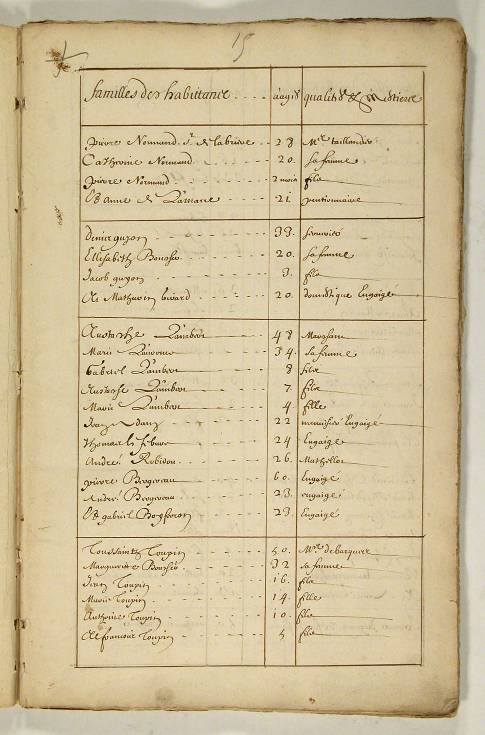 | Recensement | 1666 (Âge 20) Qualité des données : source primaire Note partagée : ÉTATS DES HABITANTS DU CANADA EN 1666, FEUILLET 15