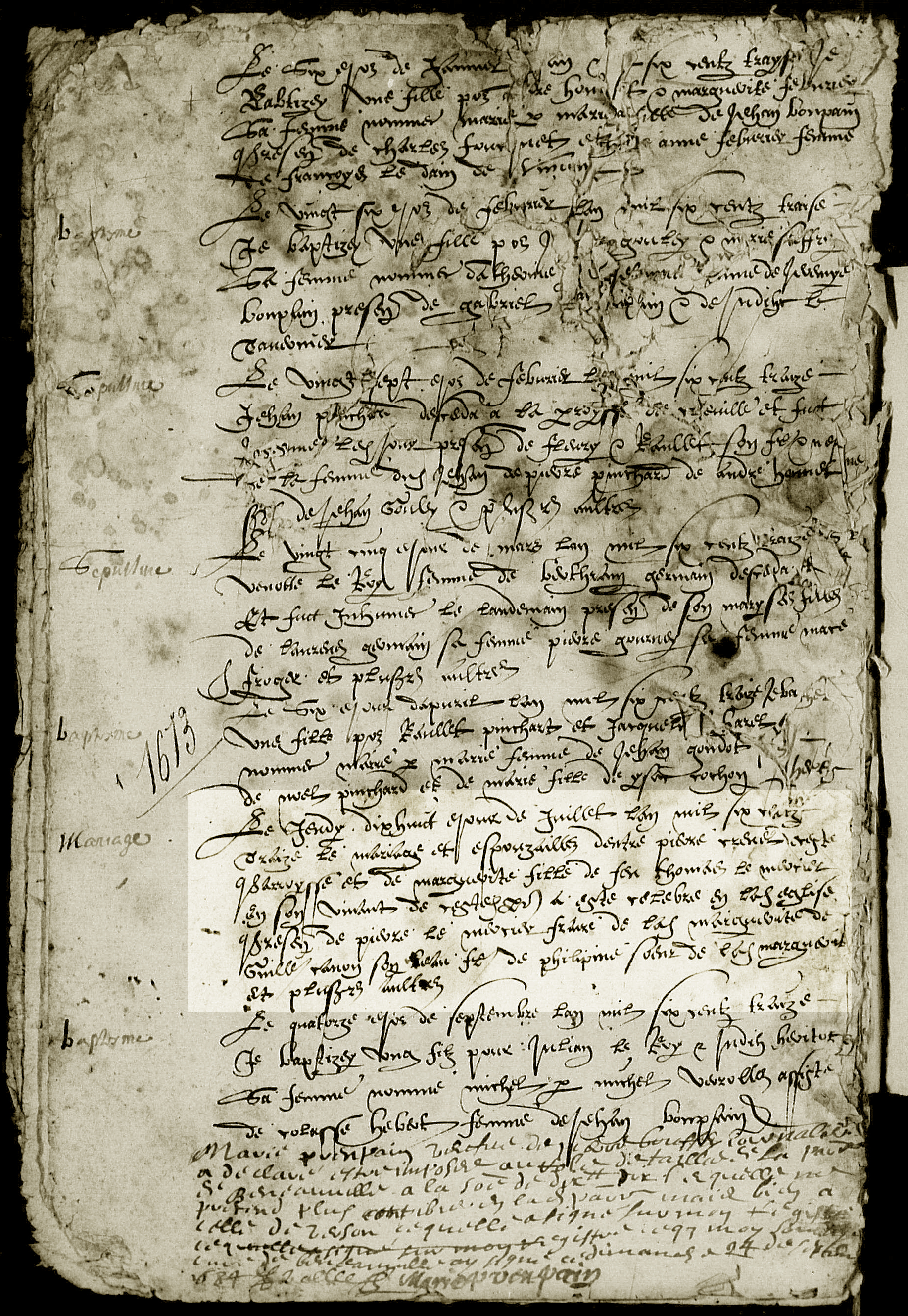 | Mariage d’un enfant | Pierre CREVET — Marie Marguerite LE MERCIER — Afficher la famille Type : Mariage religieux 18 juillet 1613Religion : Catholique romaine Qualité des données : source primaire |