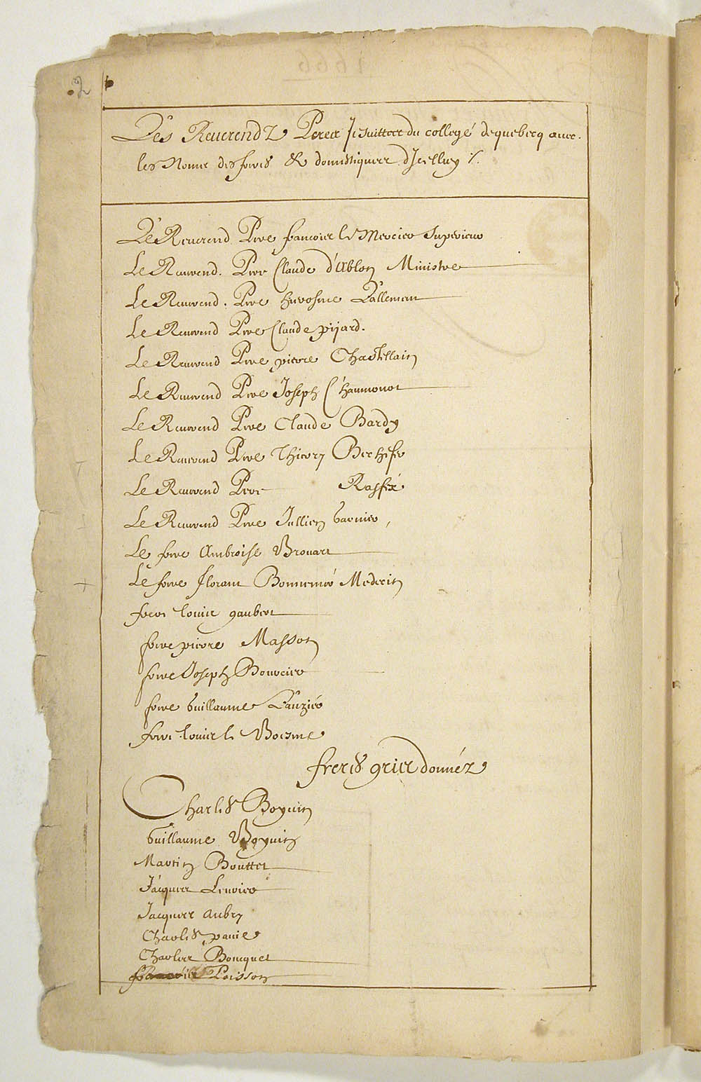 LES RÉVÉRENDS PÈRES JÉSUITES DU COLLEGE DE QUÉBEC AVEC LES NOMS DE FRÈRES ET DOMESTIQUE D'ICELLY