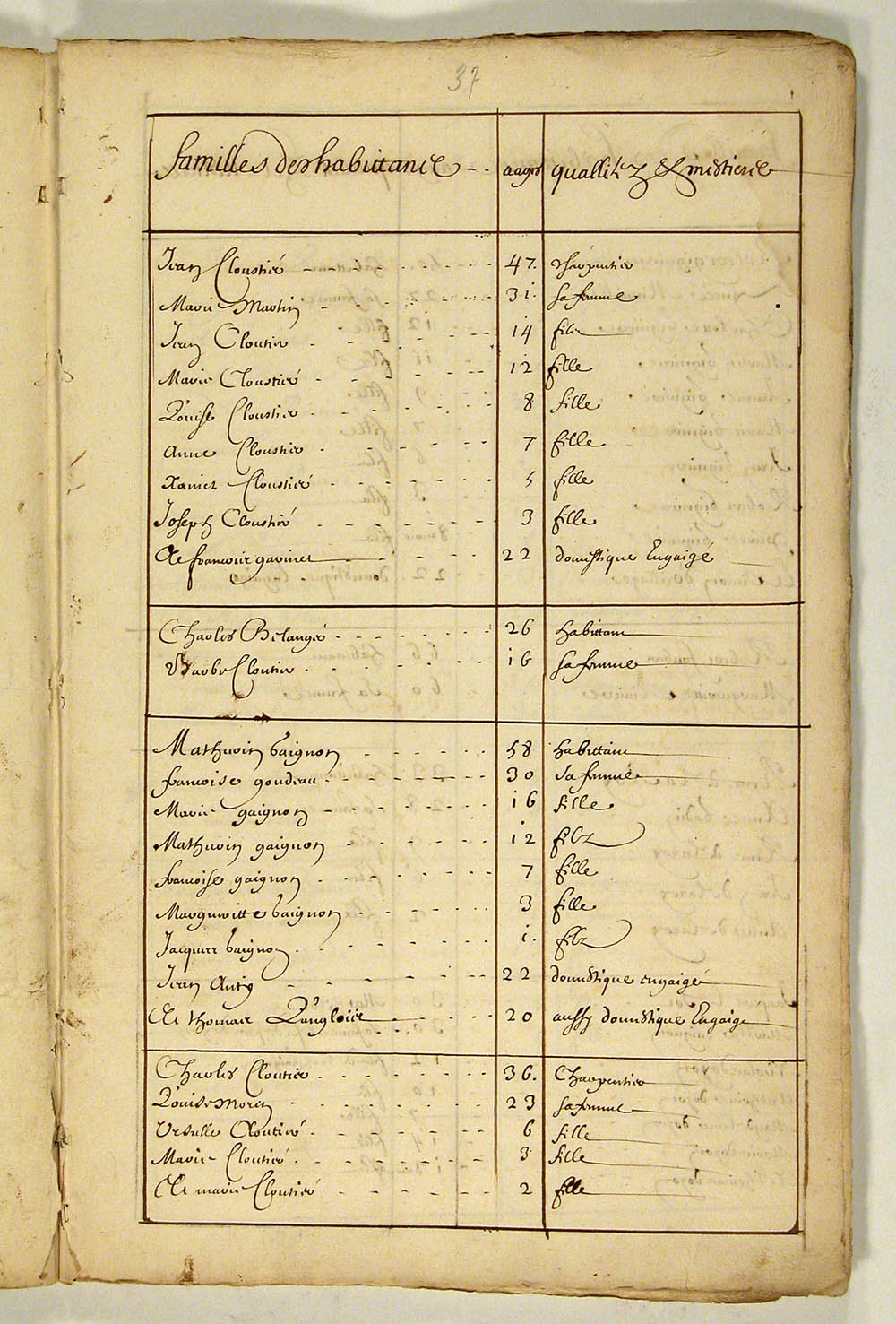 | Recensement | 1666 (Âge 2) Qualité des données : source primaire Note partagée : ÉTATS DES HABITANTS DU CANADA EN 1666, FEUILLET 37