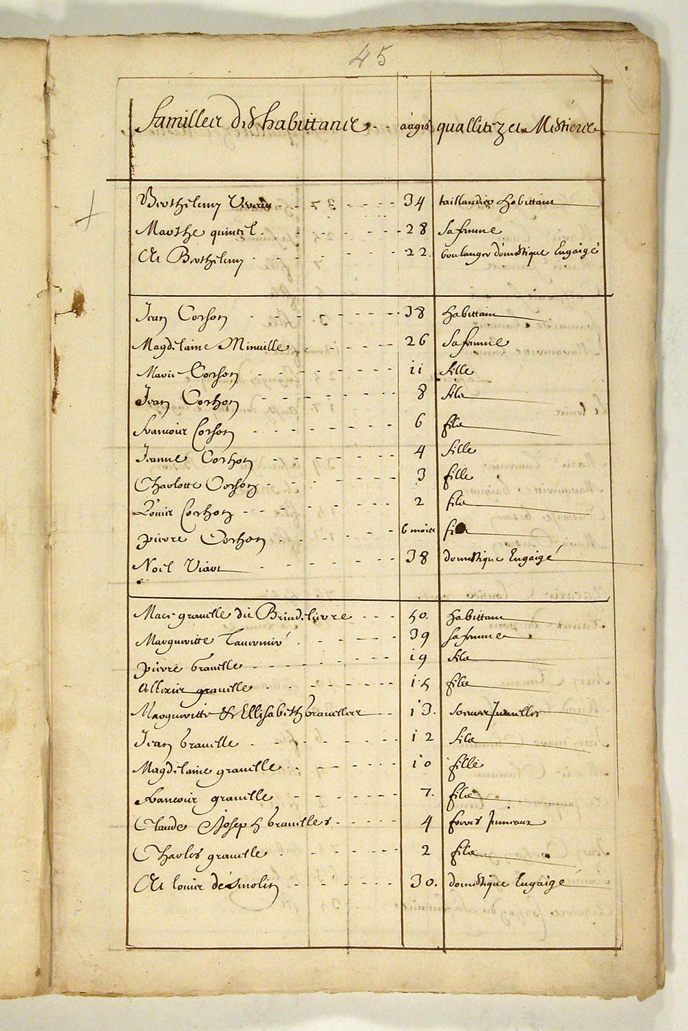 | Recensement | 1666 (Âge 3 mois) Qualité des données : source primaire Note partagée : ÉTATS DES HABITANTS DU CANADA EN 1666, FEUILLET 44
