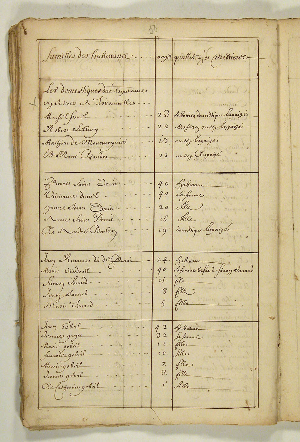 | Recensement | 1666 Qualité des données : source primaire Note partagée : ÉTATS DES HABITANTS DU CANADA EN 1666, FEUILLET 50