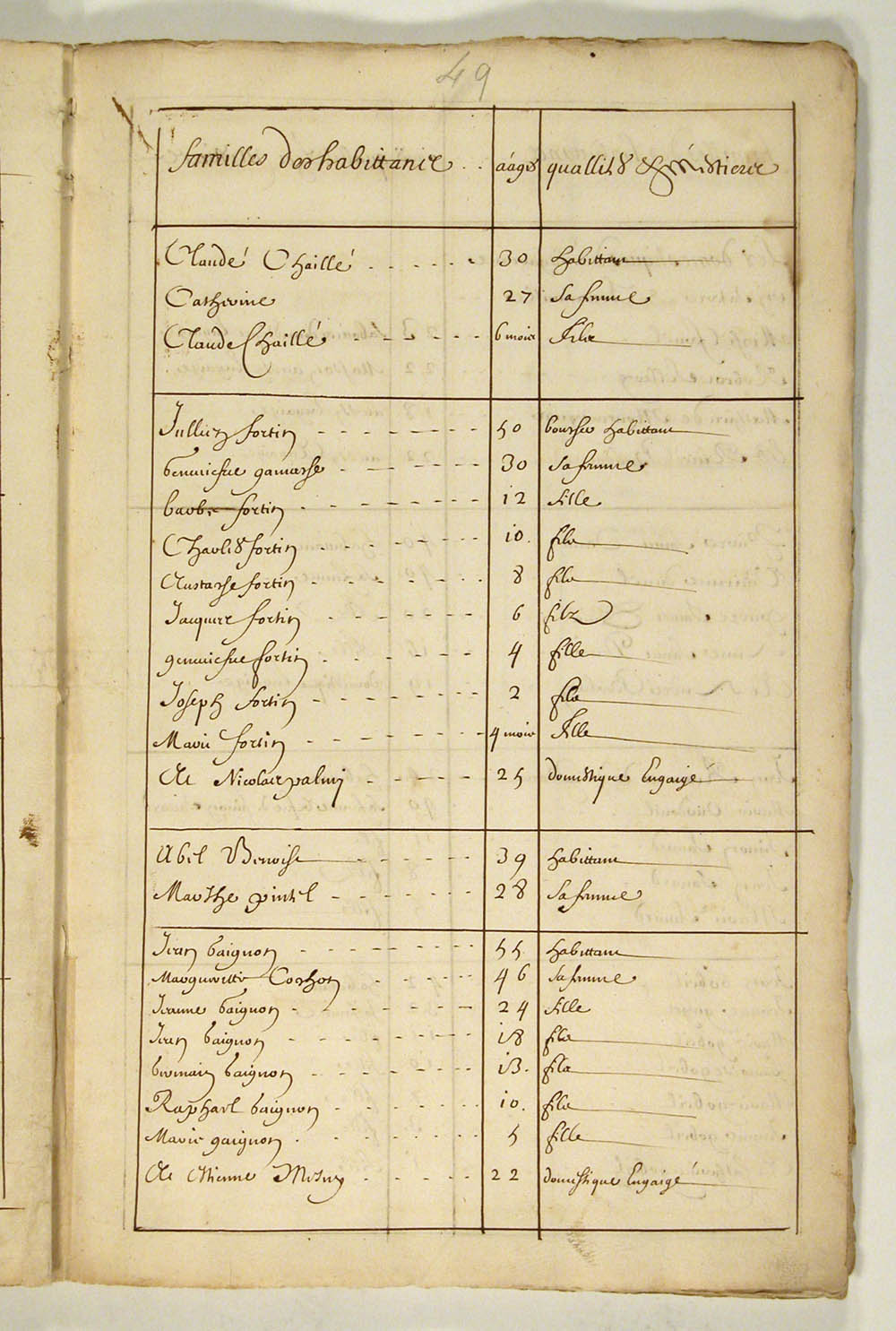 | Recensement | 1666 (Âge 55) Qualité des données : source primaire Note partagée : ÉTATS DES HABITANTS DU CANADA EN 1666, FEUILLET 49