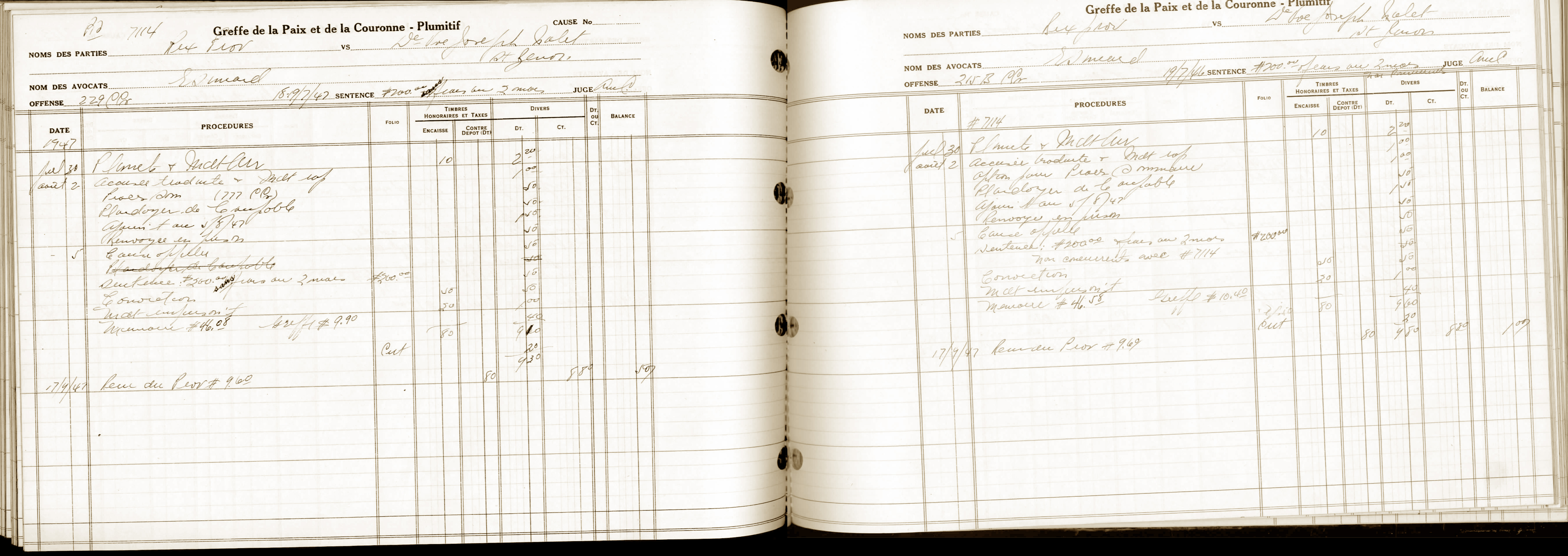 | Jugement pour proxénétisme | Sentence de 200$ et séjour en prison pour le proxénétisme de deux de ses enfants, Simone Nolet et Lydia Nolet. Les deux enfants seront aussi sentencées de 25$. Joseph Albert Gagné sera jugé pour le même événement (voir preuve). 2 août 1947 (Âge 54)Qualité des données : source primaire |