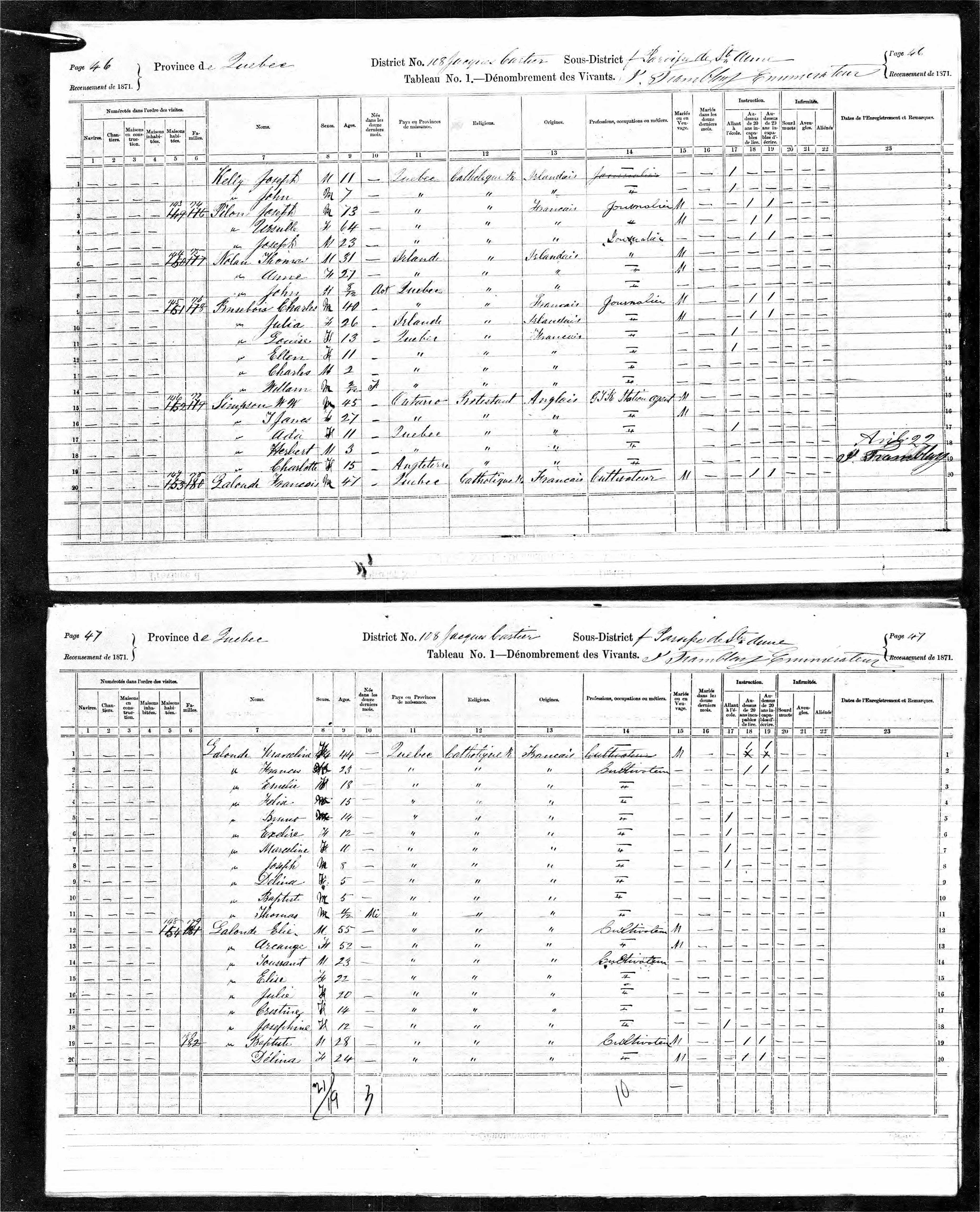 Recensement du Canada de 1871, Jacques-Cartie, Sainte-Anne-de-Bellevue, tableau 1, page 46