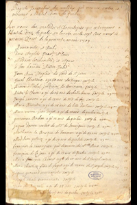 "Les noms des malades et Domestiques qui ce trouvent a l'hôtel dieu de quebec en lannée mille sept Cent neuf le premier d'ouost de la presente année 1709"