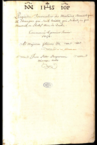 Registre Journalier des malades, Domestiques et Etrangers qui sont traités qui sortent, ou qui meurent en L hotel Dieu de quebec Commencé le premier Janvier 1752