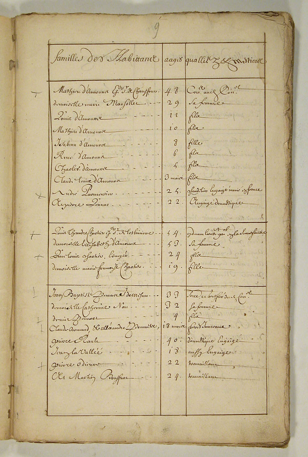 | Recensement | 1666 (Âge 10) Qualité des données : source primaire Note partagée : ÉTATS DES HABITANTS DU CANADA EN 1666, FEUILLET 9