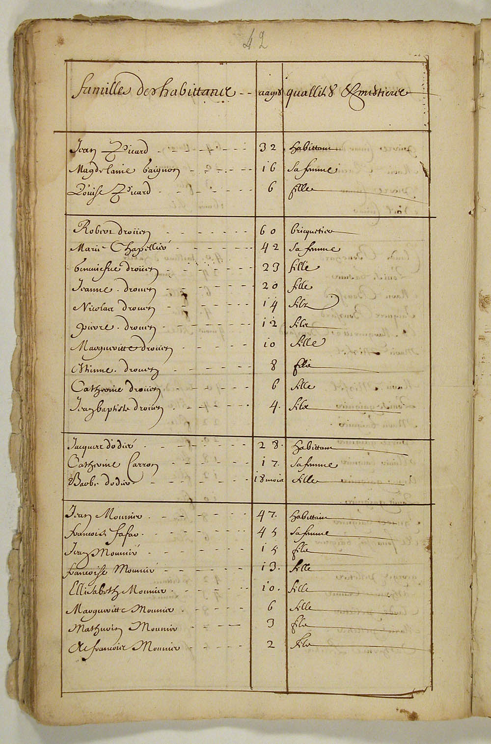 | Recensement | 1666 (Âge 8 mois) Publication : RECENSEMENT 1666 Qualité des données : source primaire Note partagée : ÉTATS DES HABITANTS DU CANADA EN 1666, FEUILLET 42