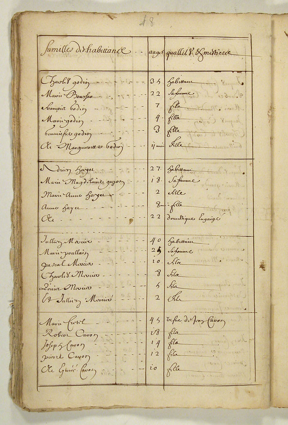 | Recensement | 1666 (Âge 3) Qualité des données : source primaire Note partagée : ÉTATS DES HABITANTS DU CANADA EN 1666, FEUILLET 46