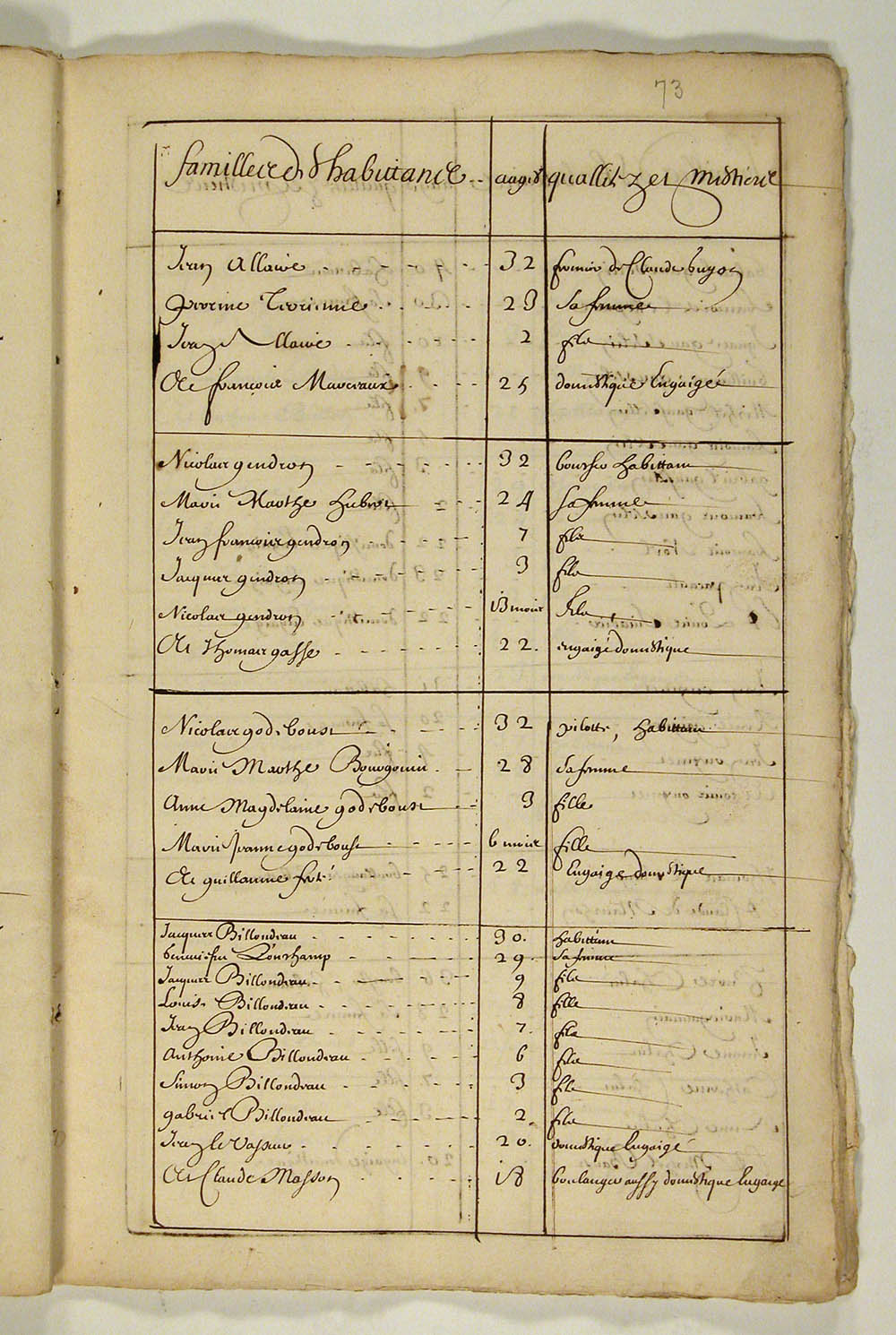 | Recensement | 1666 (Âge 40) Qualité des données : source primaire Note partagée : ÉTATS DES HABITANTS DU CANADA EN 1666, FEUILLET 73