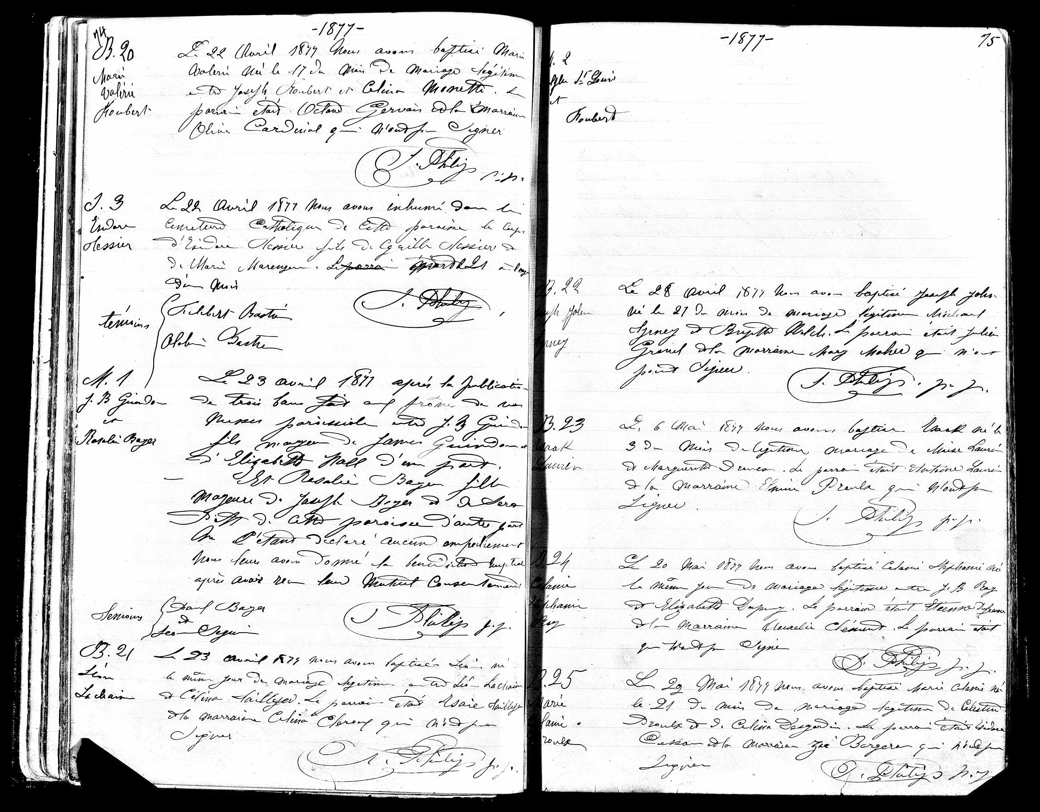 | Mariage d’un enfant | Jean Baptiste GUINDON — Rosalie BOYER — Afficher la famille Type : Mariage religieux 23 avril 1877 (Âge 57)Religion : Catholique Romaine Qualité des données : source primaire |