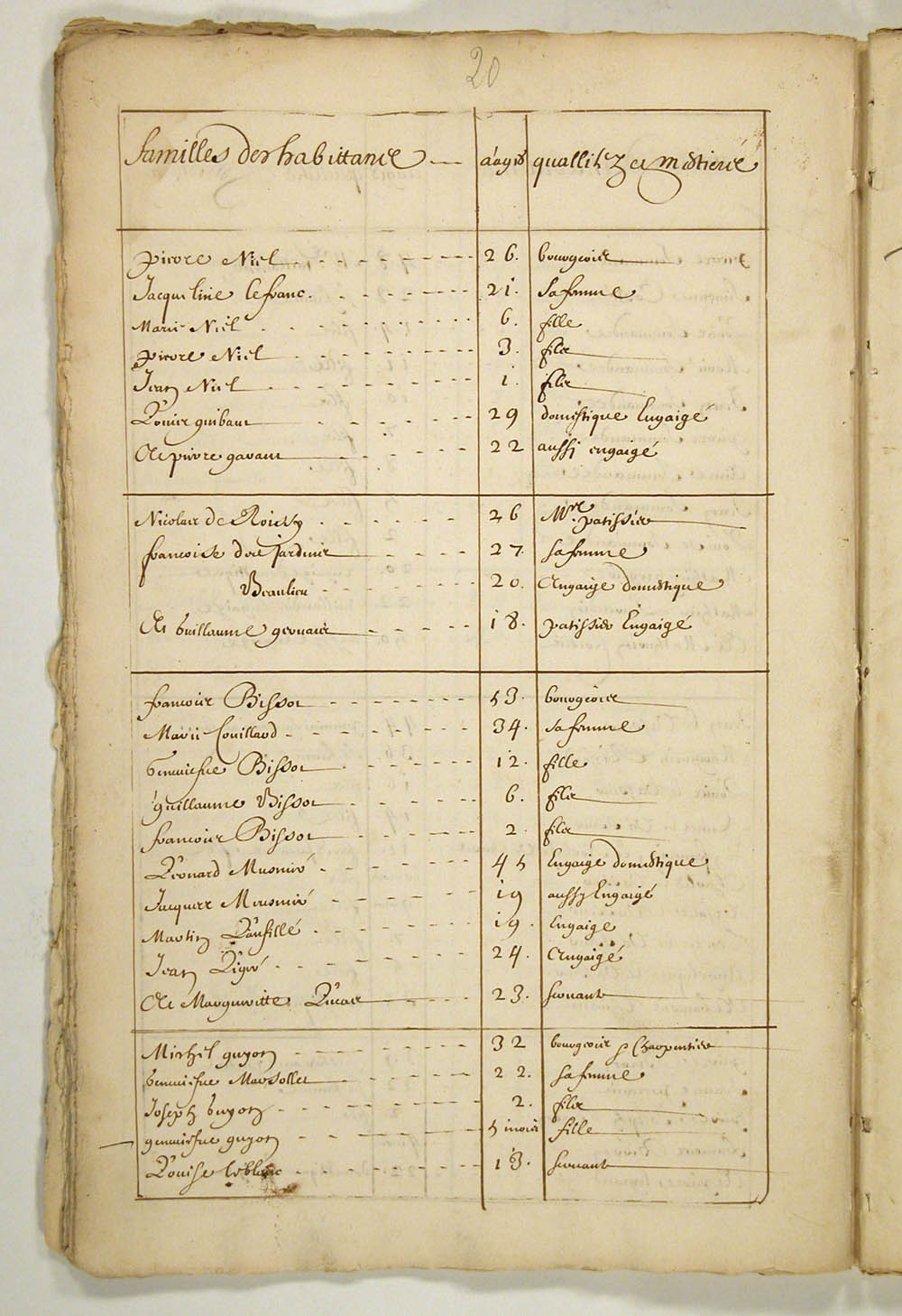 | Recensement | 1666 (Âge 12) Qualité des données : source primaire Note partagée : ÉTATS DES HABITANTS DU CANADA EN 1666, FEUILLET 20