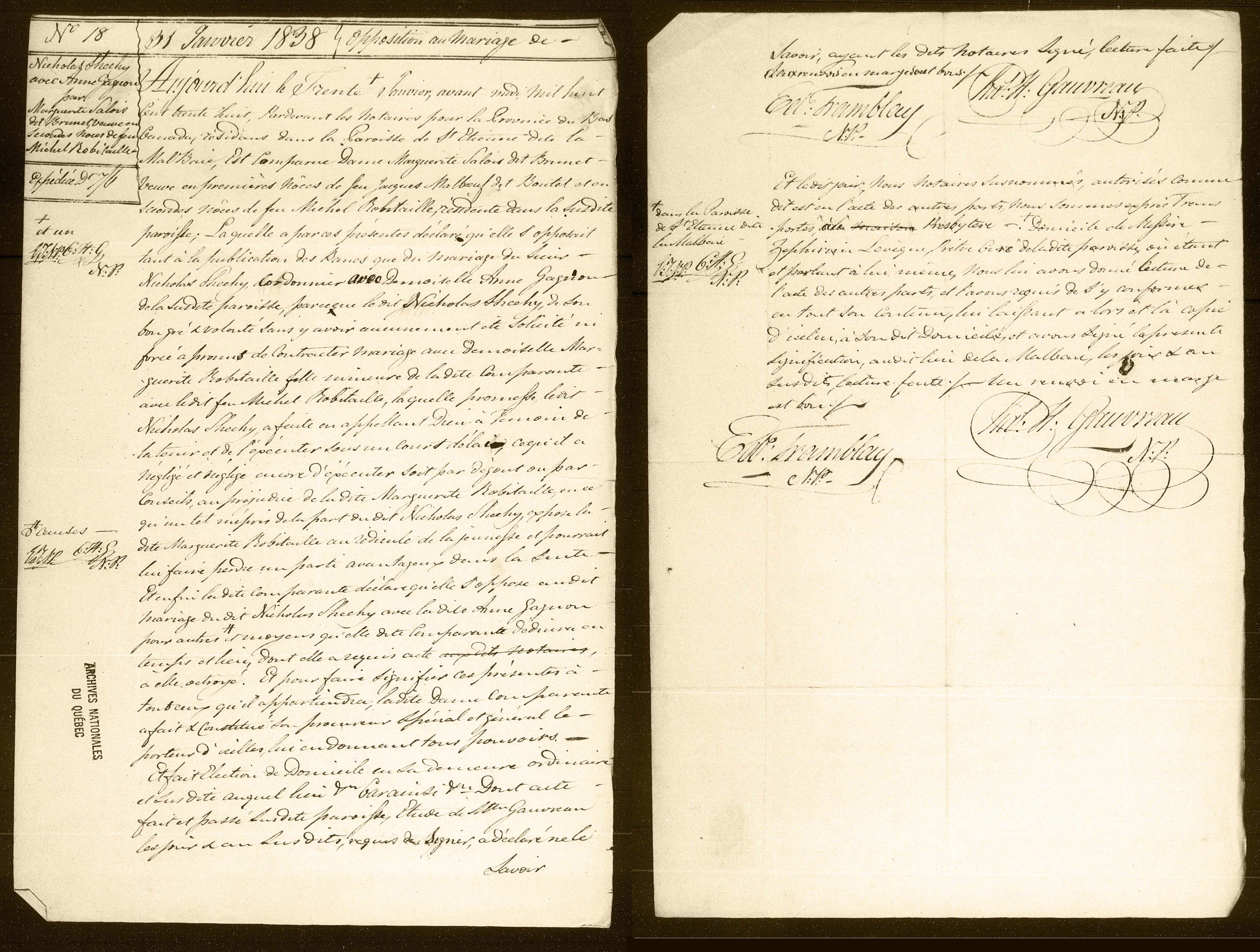 Mariage : 20 février 1838 — Saint-Étienne, La-Malbaie, Bas Canada |