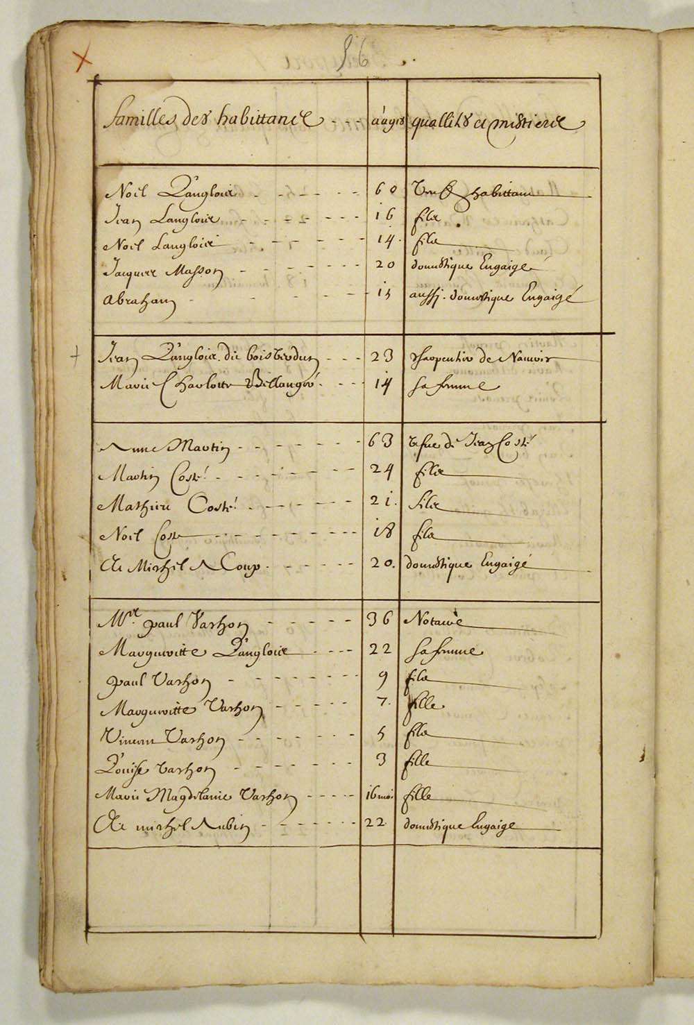 | Recensement | 1666 (Âge 5) Qualité des données : source primaire Note partagée : ÉTATS DES HABITANTS DU CANADA EN 1666, FEUILLET 56