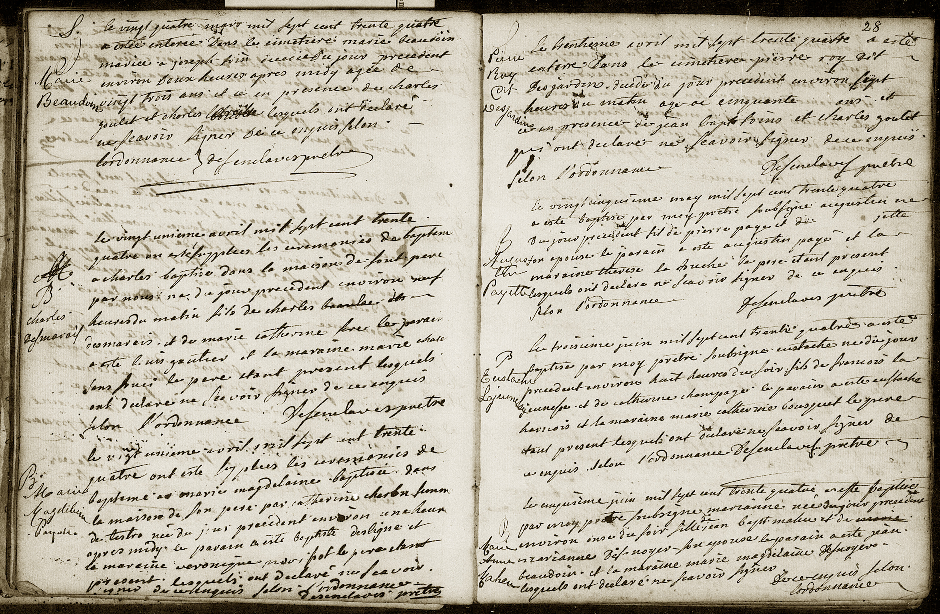 | Mariage religieux | Marie Charlotte DELUGRÉ — Afficher la famille 30 octobre 1727 (Âge 58) Religion : Catholique romaine Source : ACTES PAROISSIAUX, REPENTIGNY, LA-PURIFICATION, VOLUME 33 ( OCTOBRE 1727-1730), FEUILLET 2-3 Qualité des données : source primaire |